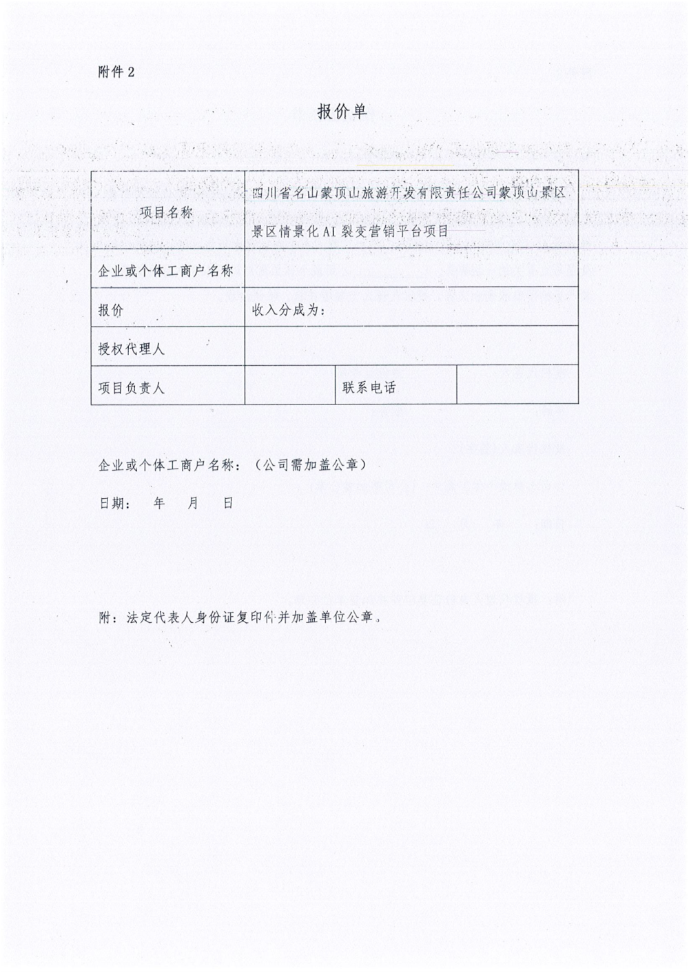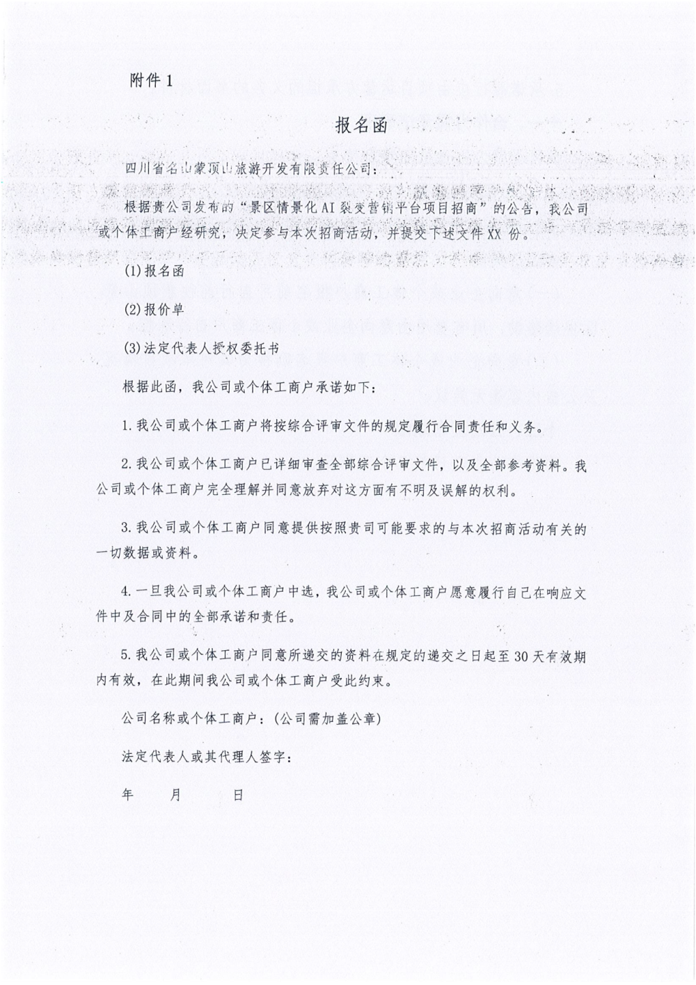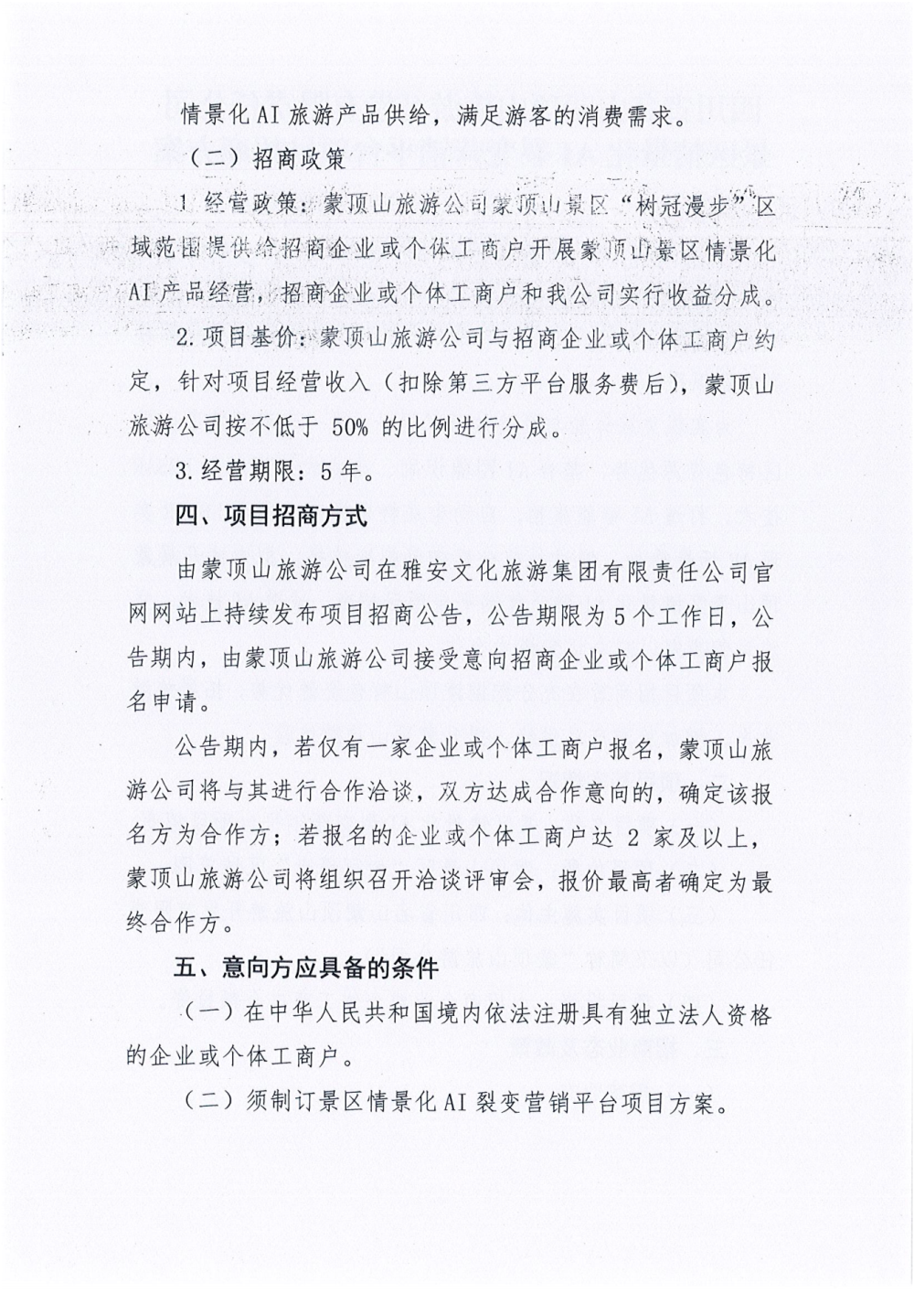 四川省名山蒙頂山旅游開發(fā)有限責(zé)任公司 景區(qū)情景化AI裂變營銷平臺項目招商